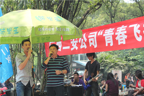 2011年4月23日,集團(tuán)二安公司團(tuán)委組織全公司各基層團(tuán)支部在柳州市雀山公園舉行了主題為“青春飛揚(yáng)” 露天音樂(lè)會(huì)團(tuán)日活動(dòng),迎接第92個(gè)“五四青年節(jié)”的到來(lái)。公司董事長(zhǎng)、總經(jīng)理、黨委副書(shū)記黃鼎龍;公司黨委書(shū)記、紀(jì)委書(shū)記、工會(huì)主席藍(lán)錦??;公司副總經(jīng)理覃幼轍;公司副總經(jīng)理、第三分公司經(jīng)理莫雄清參加了此次活動(dòng)。并為榮獲集團(tuán)公司一屆二次職代會(huì)文藝晚會(huì)一等獎(jiǎng)的演員及榮獲公司2010年度“十佳青年崗位能手”頒發(fā)榮譽(yù)證書(shū)及獎(jiǎng)金。活動(dòng)集表彰、素質(zhì)拓展訓(xùn)練、氣排球比賽,文藝表演等于一體,形式新穎,精彩紛呈。團(tuán)員青年們積極參與,各自表演自己的特長(zhǎng),唱歌、跳舞等節(jié)目層出不窮,活動(dòng)現(xiàn)場(chǎng)氣氛熱烈,高潮迭起,展現(xiàn)出了二安青年員工朝氣蓬勃、積極向上的精神面貌,吸引了不少?lài)^者的眼球。此次活動(dòng)的開(kāi)展,增進(jìn)了團(tuán)員青年們的溝通交流,企業(yè)凝聚力進(jìn)一步增強(qiáng),更好地促進(jìn)廣大團(tuán)員青年員工立足崗位,扎實(shí)工作,不斷創(chuàng)新,充分發(fā)揮團(tuán)員青年生力軍作用,在公司建功立業(yè)過(guò)程中體現(xiàn)青年人的人生價(jià)值,為公司健康快速發(fā)展奉獻(xiàn)青春力量!